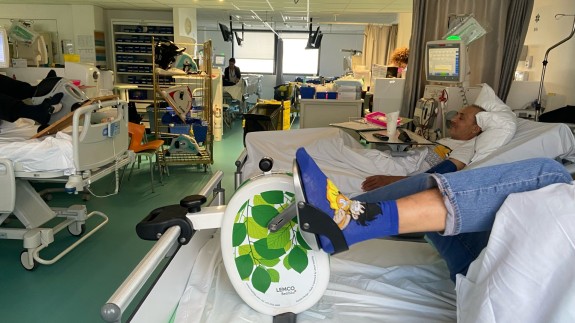 C’est la raison pour laquelle depuis plusieurs années, l’unité de dialyse met à disposition des patients sept pédaliers motorisés avec résistance, facile à installer en bout de lit, leur permettant de pédaler en position allongée pendant leur traitement. Une manière efficace de transformer ce temps de soin en moment d’entretien physique.